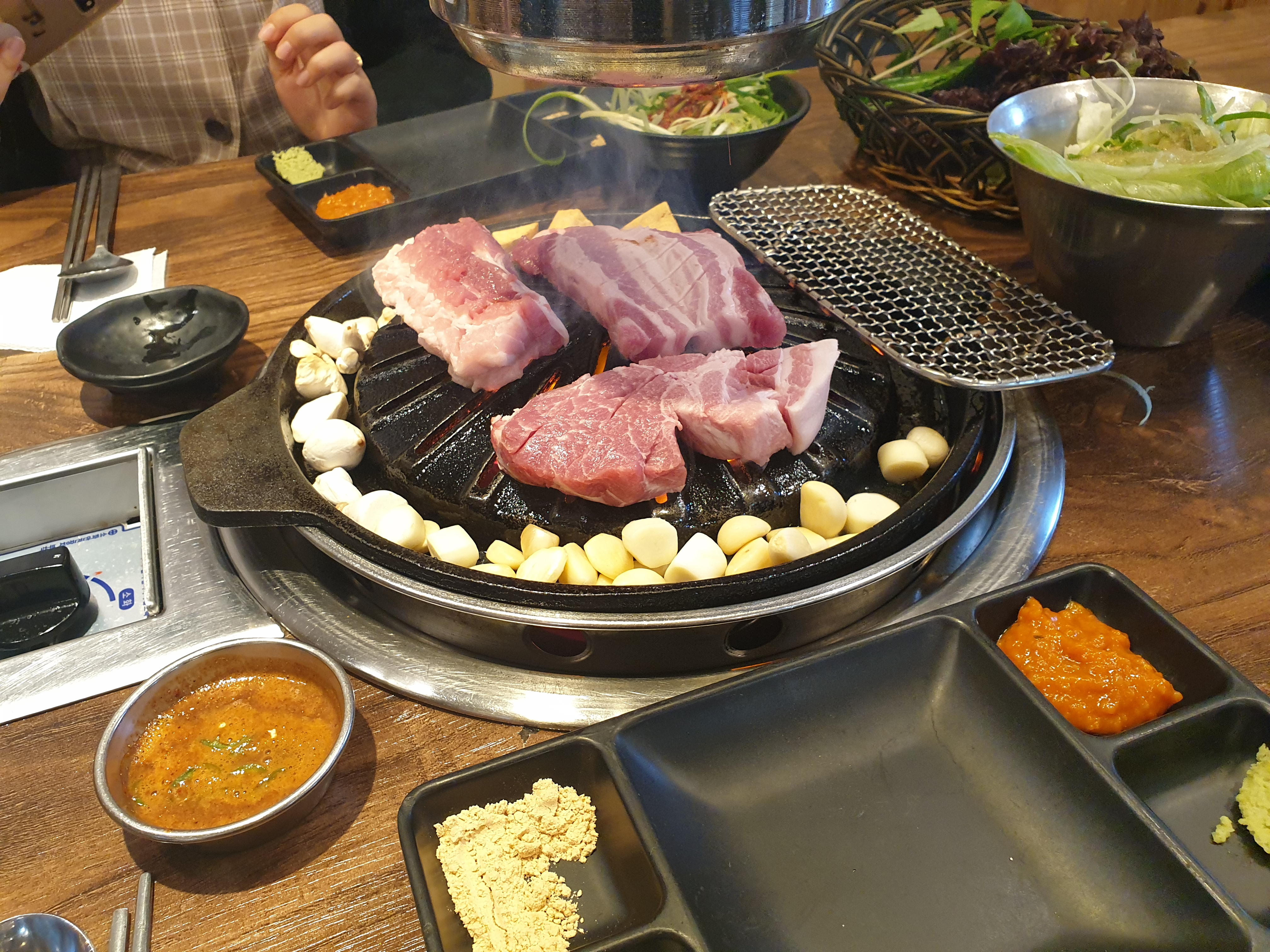 친구들한테 경사가 있으면 고기를 얻어먹었던 식당이다 나도 친구들 사주기도 했었고 오늘은 머리자르고 데이트로 왔다 장소는 [카카오맵] 육가공장 2호점 경기 부천시 부일로 439 1층 (심곡동) http://kko.to/Ndt80c8YH육가공장경기 부천시 부일로 439map.kakao.com 부천 북부역에서 중동역쪽으로 걸어가면 있다 메뉴판 2명이서가서 육가한판+멜젓뚝배기볶음밥(대) 주문했다 이 집은 멜젓밥이 아주 별미다 반찬들 샐러드뒤에 명이나물도 있다 테두리에는 마늘이랑 구워먹는치즈랑 고구마가 있다 멜젓찍어먹으면 제주도 생각나고 좋다 김치찌개는 그냥 나온다 얘가 맛있다ㅋㅋㅋ 다음에 또와야지